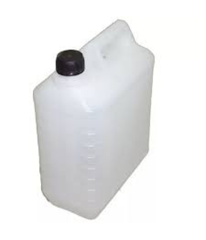 Műanyag fehér kanna. A kanna tetejét menetes kupakkal lehet zárni. Alkalmas nem oldékony folyadékok tárolására és szállítására.
