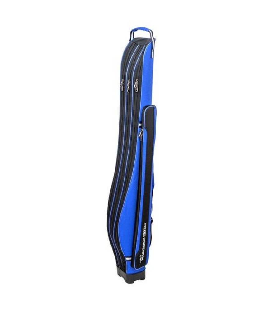 A Feeder Competition Három fakkos, merev bottartó táska a termékcsaládra jellemző elegáns megjelenésű, magas minőségű termékünk. Merev falának köszönhetően egyszerre három darab, kompletten felszerelt feederbot biztonságos tárolására alkalmas, védve azokat az ütődésektől és egyéb sérülésektől. Mind a bottartó rekeszek, mind az oldalzseb masszív, strapabíró cipzárt kapott. Ez utóbbi tökéletes a tropid és a bottartó fej tárolására. Alsó részére könnyen tisztítható kemény talp került, melynek segítségével a bottartó táska felállítható. Kiszélesedő vállpántja nem vág, állítható hosszúságú, így kényelmesen szállítható. A Feeder Competition Három fakkos, merev bottartó táska kiváló választás feeder, match de akár a hagyományos fenekező horgászatot kedvelőknek – bárkinek, aki a botjait biztonságban szeretné tudni.