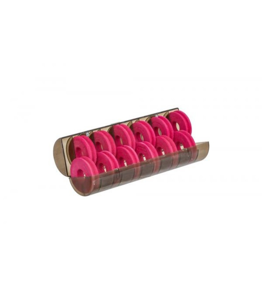 A strapabíró, átlátszó anyagú, hosszúkás henger alakú műanyag tartóba 12 darab korong formájú EVA spulni kapott helyet. Gyakran van szükség kimondottan hosszú horogelőkékre, melyek a hagyományos előketartóba csak a zsinór ˝megtörésével˝ helyezhetőek el. Ezzel ellentétben a spulnis megoldás esetén a hosszú előkéket szépen feltekerve – megtörés nélkül – tárolhatjuk. Az első előke horgát egyszerűen beleszúrjuk a szivacsos spulni oldalába, majd a következő horgot az előző előke hurkába akasztjuk, utolsó előke fülének rögzítése egy gömbfejű gombostű segítségével könnyen megoldható. Az előkék mellett akár előketoldásokat, de komplett szerelékeket is tárolhatunk a spulnikon.