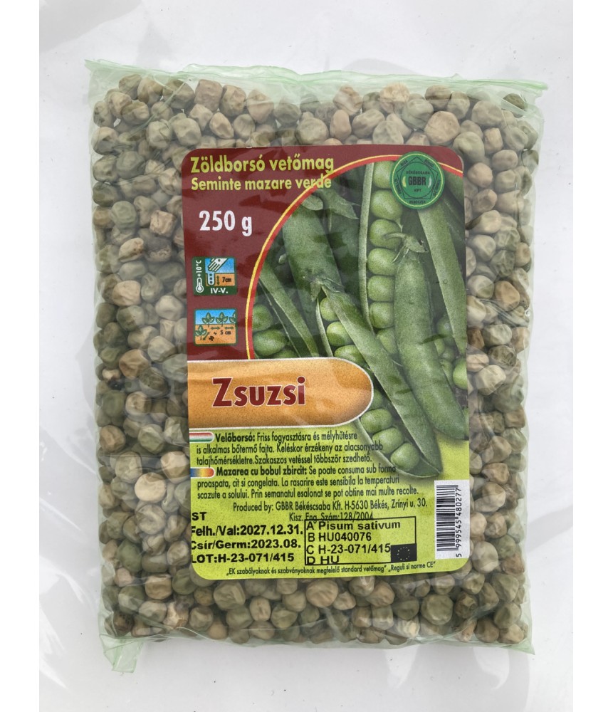 Kései érésű, nagy, sötétzöld szemszínű, igen kedvelt velőborsó fajta. Hüvelyei szép piacosak, 9-11 cm hosszúak, 8-10 szem maggal. könnyen fejthetők.