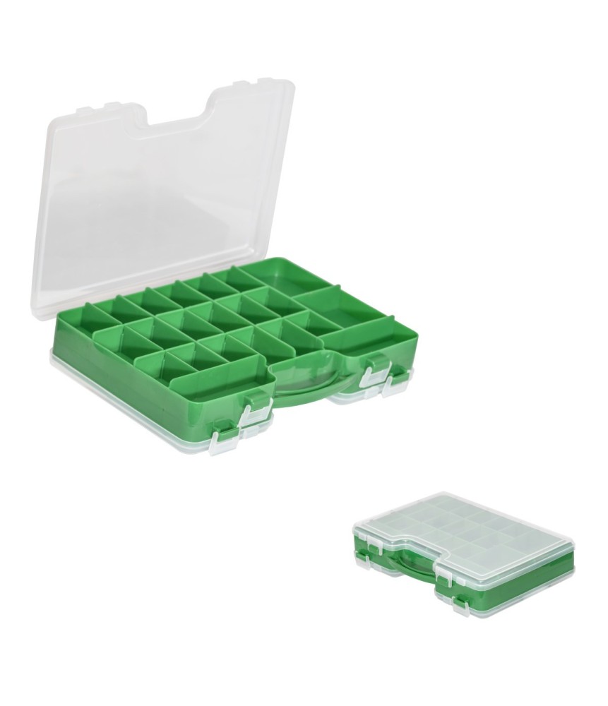 Az apróbb kiegészítők rendszerezett, átlátható tárolására kialakított, kétoldalas szerelékes doboz. A kivehető válaszfalaknak köszönhetően nagy szabadságot ad a horgásznak az ideális belső elrendezés kialakításában. Anyaga strapabíró műanyag. A fedele áttetsző, így annak felnyitása nélkül is látható a doboz tartalma, biztonságos zárásáról gyorscsatok gondoskodnak. Pár ilyen dobozzal, akár külön vizekre vagy módszerekhez specializált szerelékes dobozt is összeállíthatunk, így csak fel kell kapni a megfelelőt és már indulhatunk is horgászni. Hátizsákban, de akár egy oldaltáskában is elfér. Elsősorban békéshal horgászoknak ajánljuk, de a rablóhalasok is előszeretettel választják.