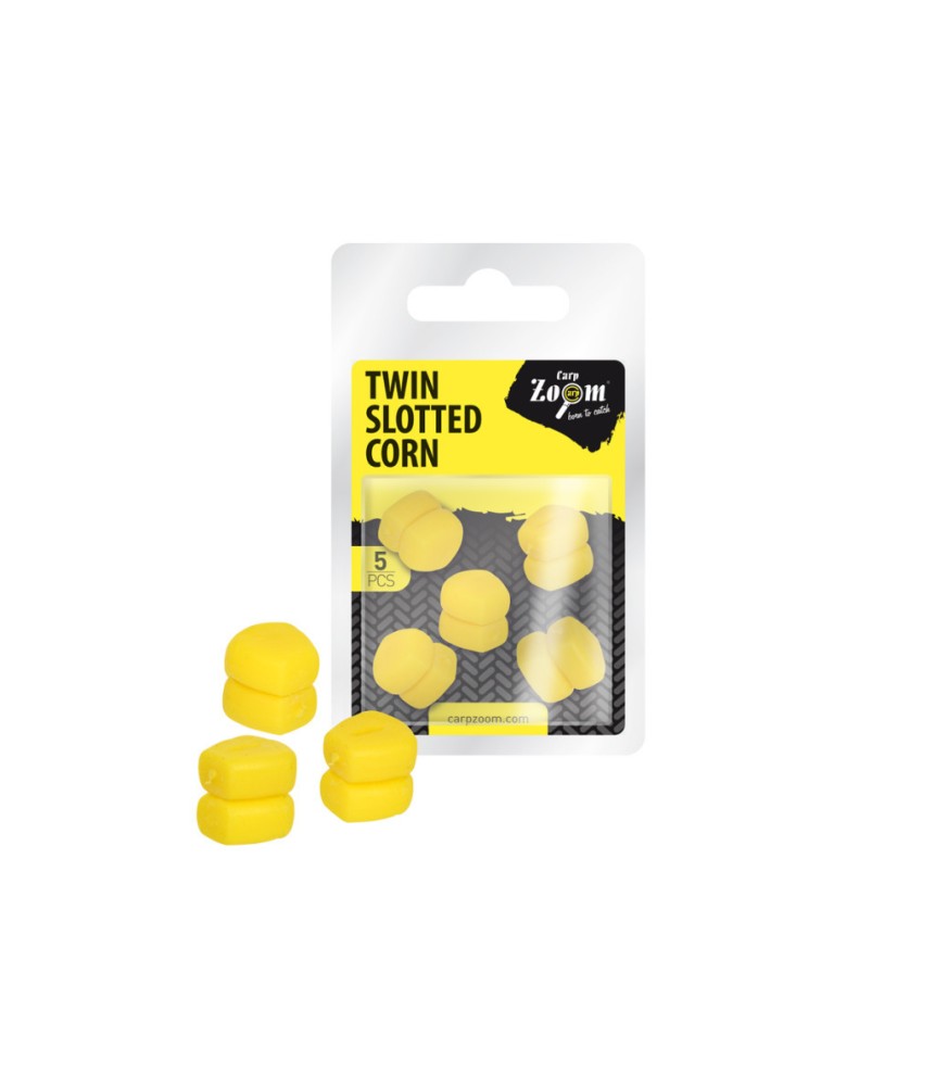A Carp Zoom Twin kukorica imitáció nem csak tüskére, hanem hajszálelőkére is könnyen felfűzhető. A gumikukorica lebegő tulajdonsággal rendelkezik, képes elemelni a jól megválasztott horgot a talajtól, tulajdonképpen pop-up és wafters csaliként is működik. Intenzív aromába áztatva, hosszantartó csalogató hatás érhető el. A kukorica felületén lévő perforációban elrejthető a stopper. Klasszikus fenekező és feeder horgászoknak ajánljuk. Használható önmagában vagy más csalikkal kombinálva is.