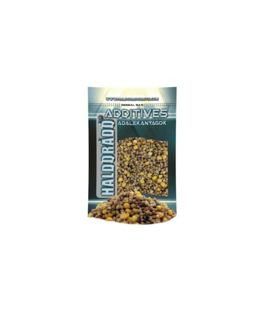 Ez a háromféle főtt magvat, búzát, kukoricát, kendert tartalmazó keverék komplett megoldást nyújt számunkra, akár keszegféle, akár nagytestű halakra horgászunk. Vegyes méretének köszönhetően minden halfaj talál magának megfelelő táplálékot, ám a kendernek hála mégsem fognak eltelni falatozás közben.