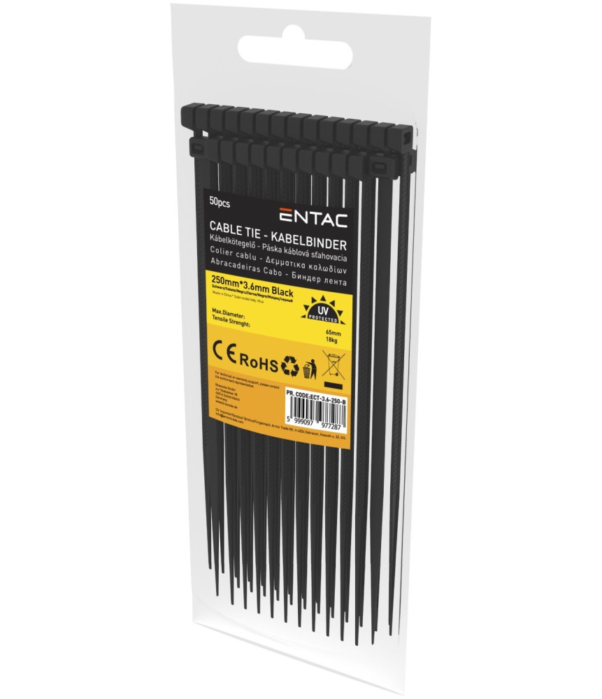 Kábelkötegelő 3,6*250mm fekete