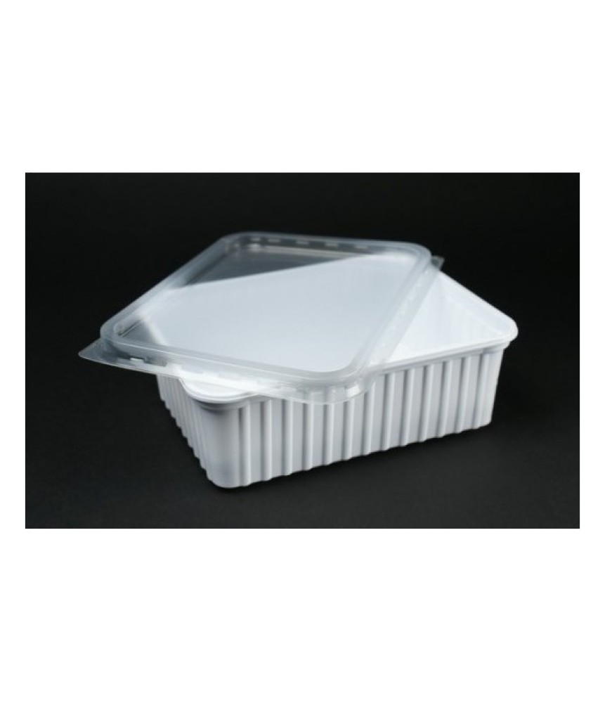 Eldobható szögletes PP fehér műanyag tál és fedő. Űrtartalom: 500ml,mikrózható.